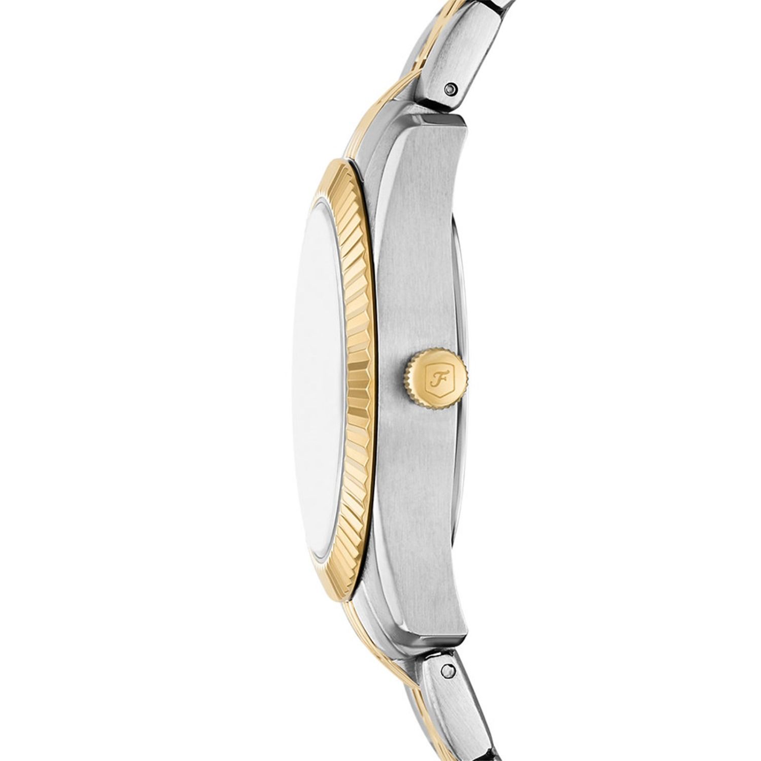 Montre Fossil femme de la collection Scarlette , mouvement Quartz , 3 aiguilles avec date , boitier en Acier inoxydable argent de 32mm avec un cadran vert sur bracelet Acier inoxydable Doré et Argent .