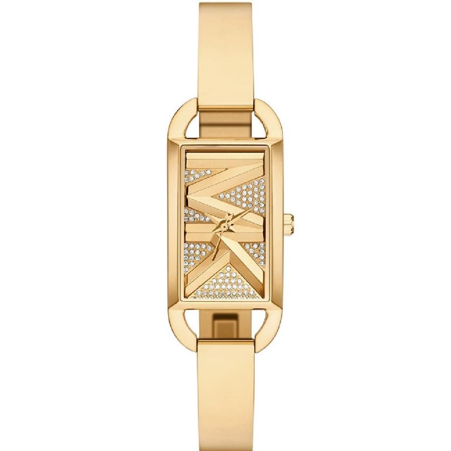 Montre MICHAEL KORS  pour femme de la collection Empire , mouvement analogique à Quartz, 3 aiguilles , boitier en acier inoxydable doré de 20×50 mm avec un cadran doré sur bracelet en acier inoxydable doré.